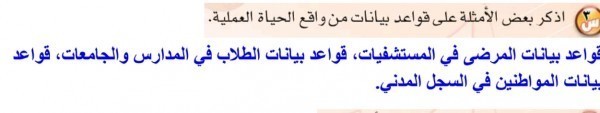 امثله على قواعد بيانات من واقع الحياة العلميه سؤال وجواب