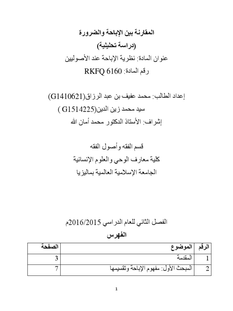 الجديد المقارنة بين الإباحة والضرورة Docx