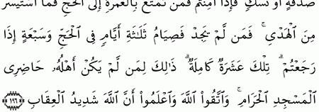 مقارنة الآيات بالروايات سورة البقرة الآية 196