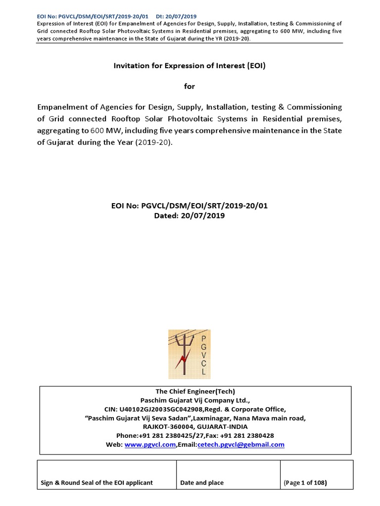 Expression Of Interest Photovoltaic System Solar Power